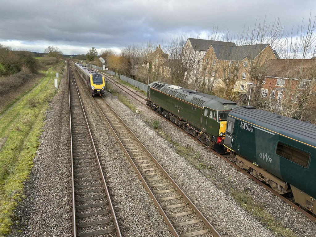 Also running on that day were the only other serviceable ‘Westerns’, our own D1010 ‘WESTERN CAMPAIGNER’ and the WLA’s D1048 ‘WESTERN LADY’, coupled together and shadowing the main railtour, although they dodged out of part of it by relaxing at Bristol Bath Road shed while the railtour went to Swansea and back. Luckily, photo contributor Trevor remained at Exeter to get the following shot of these two backup locos as they crossed the ‘Red Cow’. Many thanks to Trevor for sharing his photos with us all !