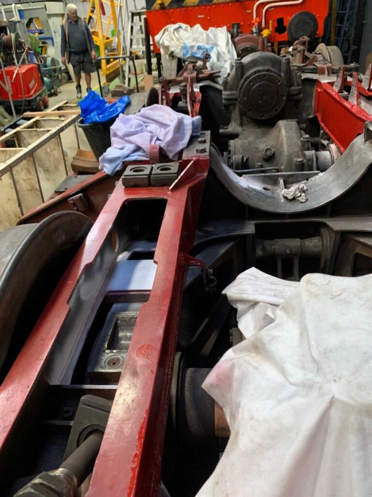 Class 52 D1010 ‘WESTERN CAMPAIGNER’ – more Non-Destructive Testing (NDT) work took place on the ‘B’ bogie frames last weekend, with Dr. Allgeier assessing the results and investigating the anomalies. So far, nothing major has been discovered, but a few small areas will need to be checked again before a decision can be made. In the worst case, some localised repair work will need to be carried out by a ‘coded’ welder, but we will only arrange this when the full extent of any repairs have been established. We already know that the ‘A’ bogie will require repairs, so we will get all of the welding work done in one session to minimise costs.