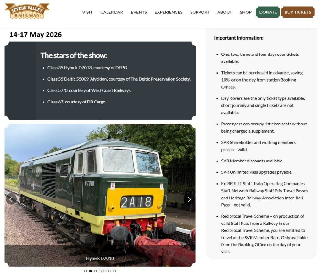 Our popular DIESEL RUNNING DATES page is in the process of being updated to cover the planned diesel-hauled services for 2026, but it will take a little longer to define the loco allocations. Meanwhile, the basic framework is there and the loco allocations will be added as soon as the information has been confirmed by the WSR. There is a lot of diesel running planned for the WSR this year. Click here or on the image below to take a look: