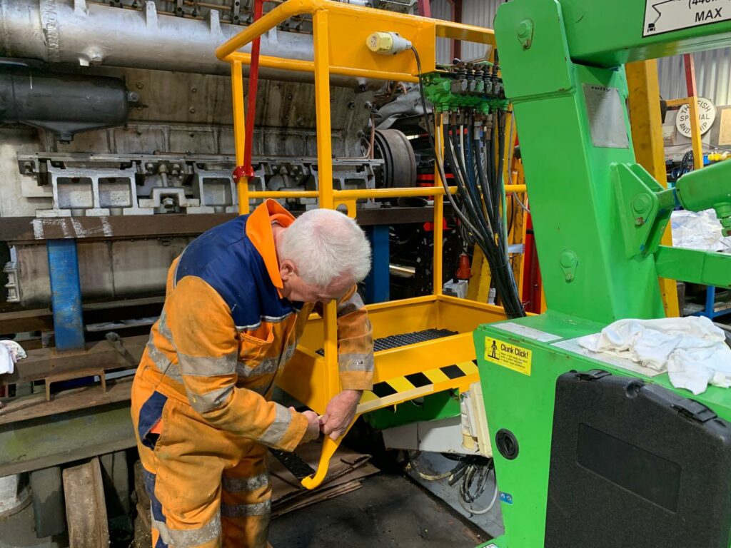 DEPG NEWS: our team of volunteers continue to share their time between working on locos and working on facilities that are needed to work on locos. The restoration of the ‘Niftylift’ ‘cherry picker’ is an example of this, because once restored and passed as safe to use, this handy machine will be used for all kinds of purposes, from washing locos through to clearing gutters and maintaining cranes. Very handy indeed.