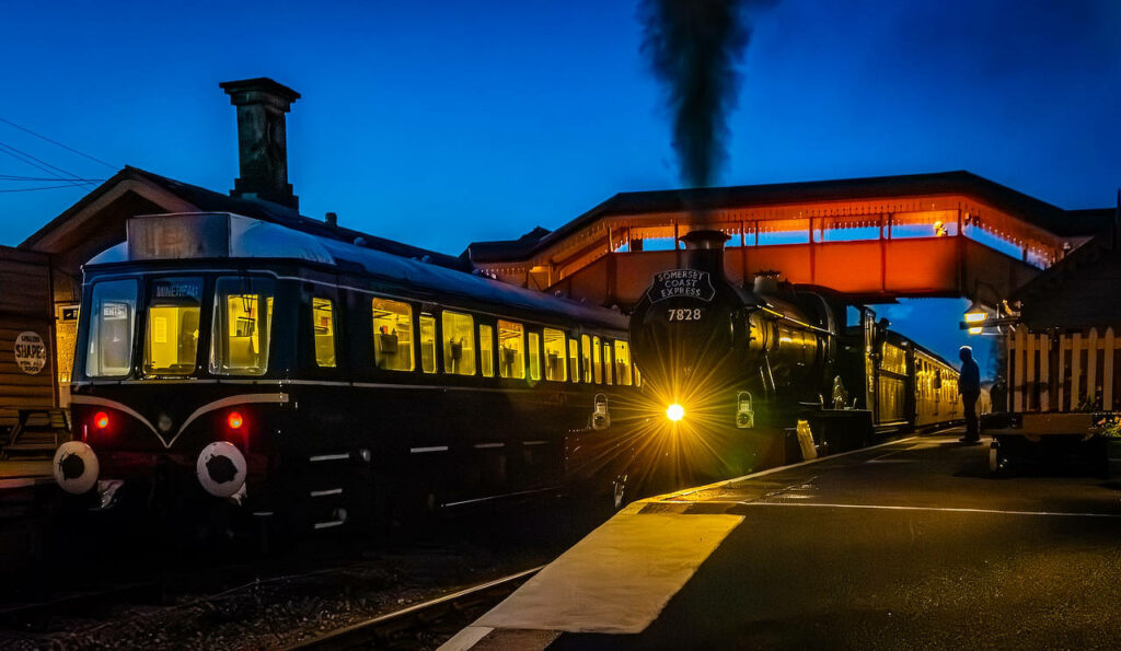The WSR’s Class 115 Diesel Multiple Unit (DMU) worked the last scheduled service to Minehead on Sunday 2nd November 2025 while BR(WR) 4-6-0 7828 ‘ODNEY MANOR’ worked the ‘up’ service towards Bishops Lydeard, to bring the 2025 running season to a close. Both were pictured at Williton by Mike Lanning © CC BY-NC 4.0