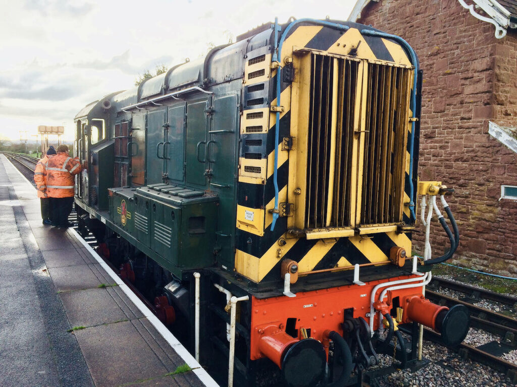 D4107 (09019) – this very useful dual-braked loco (air and vacuum) has been on duty at Bishops Lydeard since April and will now move to Williton to undergo bodywork repairs. Pictured at Bishops Lydeard on 19th November 2025 by Henry Reid © CC BY-NC 4.0