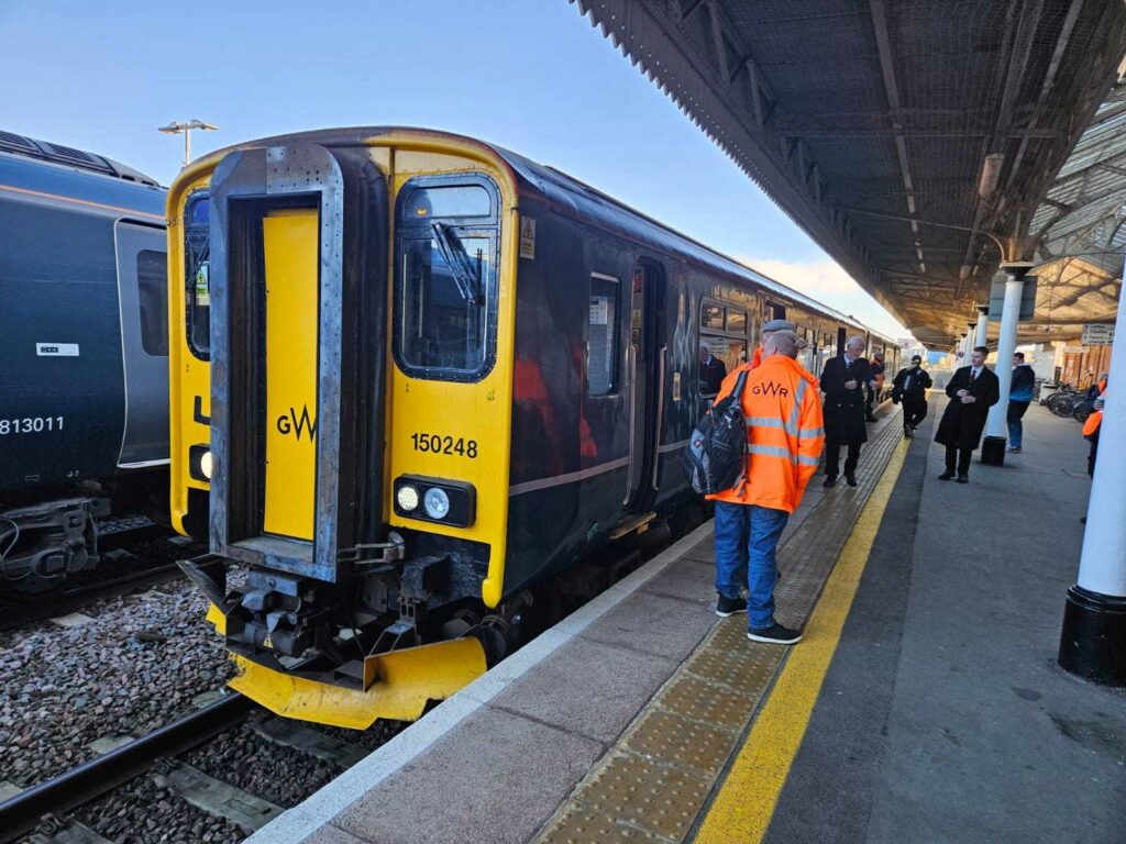 GWR Class 150 ‘Sprinter’ 150248 was pictured at Taunton on Tuesday 25th November 2025 with the 10:05 to Bishops Lydeard special service, in connection with the visit of the ‘Inspiration’ exhibition train. Photo by Steve Thorneley © CC BY-NC 4.0