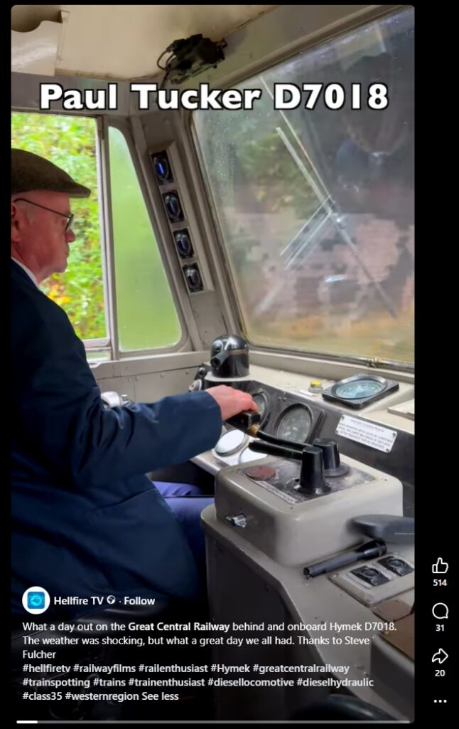 CONGRATULATIONS to DEPG member STEVE FULCHER on the success of his D7018 charter on the Great Central Railway last Saturday 22nd November, which went ahead despite the awful weather, using the GCR‘s Steam Heating Van in the consist to provide copious amounts of steam to keep the carriages warm and the passengers happy.
