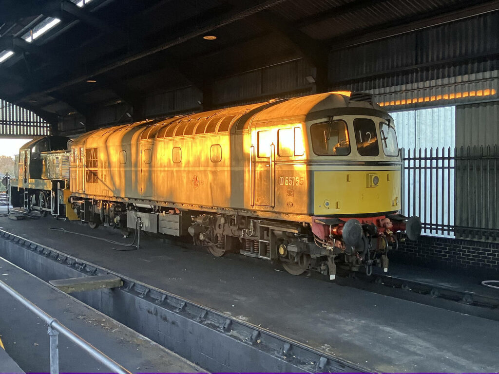 Class 33 D6575 (33 057) – this loco is now based at Bishops Lydeard where she will remain ‘on duty’ in support of the Christmas seasonal steam-hauled services. She may not get much use because all of the Christmas services are rostered for steam haulage this year, but the upside is that she will be under cover throughout the winter.
