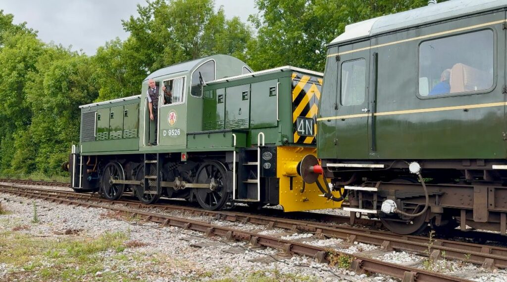 Class 14 ‘Teddy Bear’ D9526 was performing a ‘DMU drag’ when pictured departing Williton on 5th June 2025 with the Class 115 DMU during the WSR’s 2025 Summer Diesel Festival. Make a note – the WSR’s 2026 diesel event runs from Thursday 4th June 2026 though to Saturday 6th, with a mixed traction day on Sunday 7th. Photo by Natalie Royal © CC BY-NC 4.0