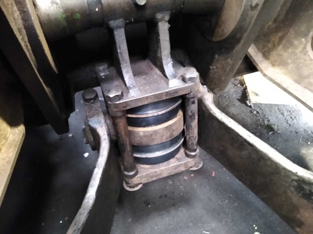 Then on Tuesday, the ‘Transmission Team’ tackled the changing of the other two sets of torque reaction bushes on the ‘B’ bogie, and found that these were in much better condition compared to those of the inboard axle (the 50-year-old rubber bushes were changed anyway). The photos below show the different arrangement of the centre axle, which did cause our team to modify their approach to take account of the space restrictions in this area.