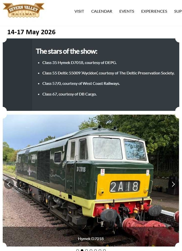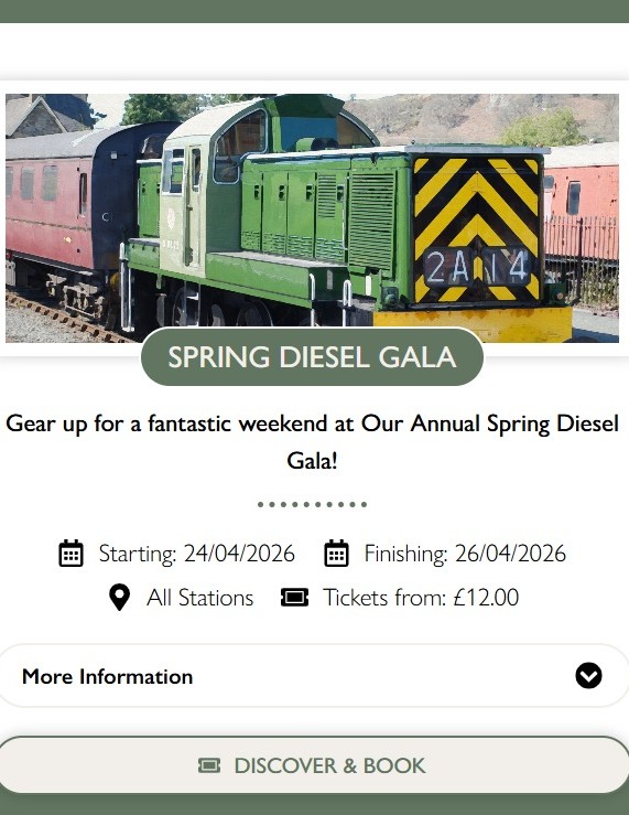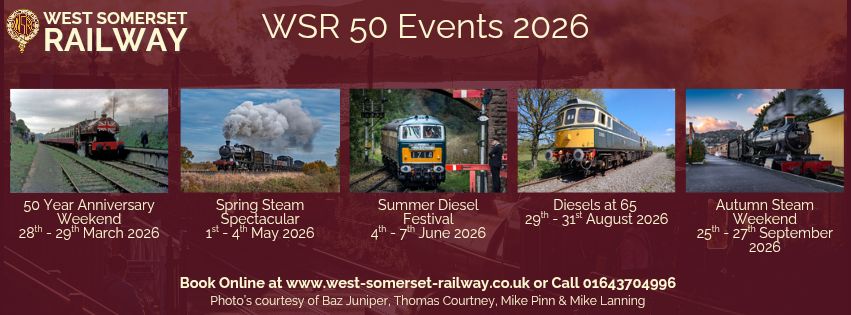 Our popular DIESEL RUNNING DATES page is in the process of being updated to cover the planned diesel-hauled services for 2026, but it will take a little longer to define the loco allocations. Meanwhile, the basic framework is there and the loco allocations will be added as soon as the information has been confirmed by the WSR. There is a lot of diesel running planned for the WSR this year. Click here or on the image below to take a look: