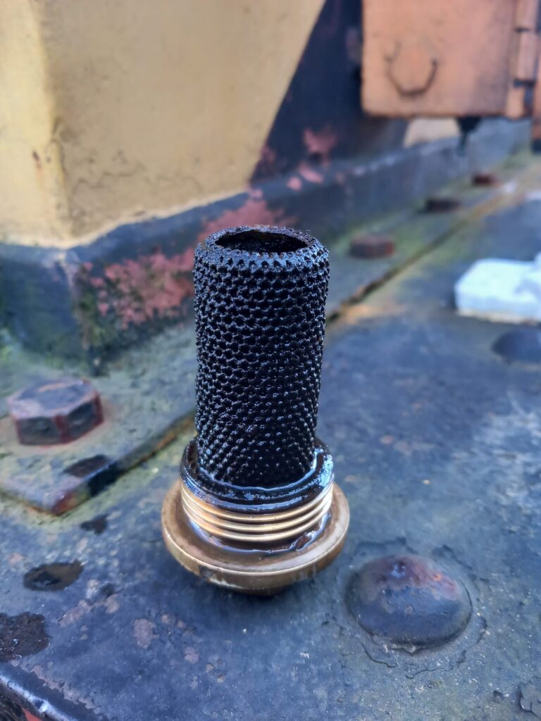 Barclay 578 (ROF 1) – the coarse fuel strainer has become coated with gummy residue and this is resulting in fuel starvation. The fuel tank and fuel system will need to be cleaned and purged (again) to resolve this problem and make this loco reliable again. Pictured at Williton on Tuesday 17th March 2026 by Tony Austin © CC BY-NC 4.0