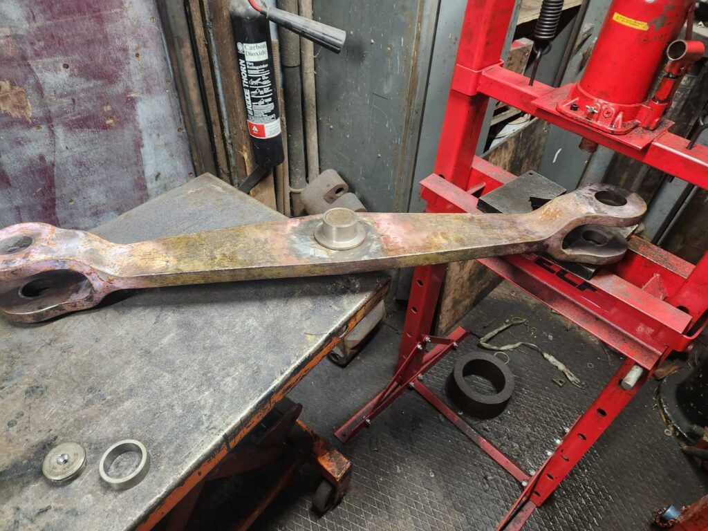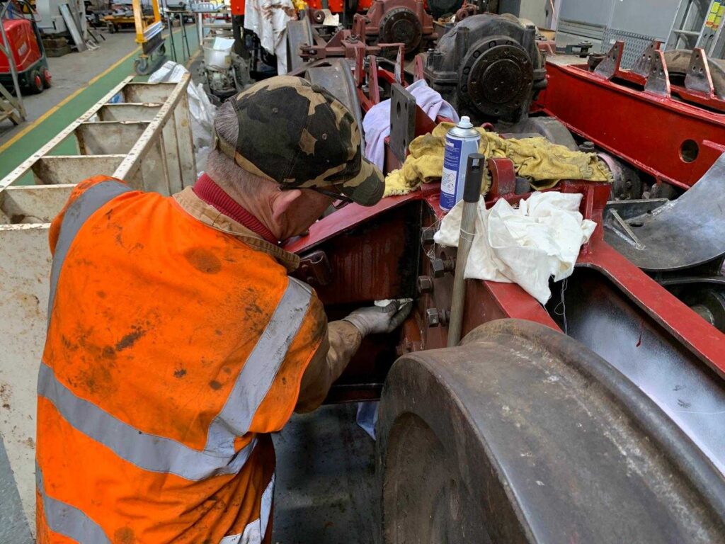 D1010 – one of the equalising beams from the primary suspension of the ‘B’ bogie was undergoing refurbishment at the workshops of subcontractor MATT HIGHAM on Saturday 14th March 2026. We expect to get these beams and the refurbished pedestal mounts back in the bogie during the first week of April. Photo by Matt Higham © CC BY-NC 4.0