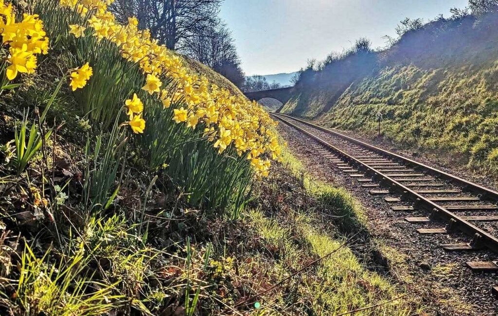 Evidence of a very neat and tidy lineside with spring flowers in abundance, the result of very hard work by the full-time and volunteer infrastructure teams. Pictured at Washford on Thursday 19th March 2026 by Jake Genge © CC BY-NC 4.0