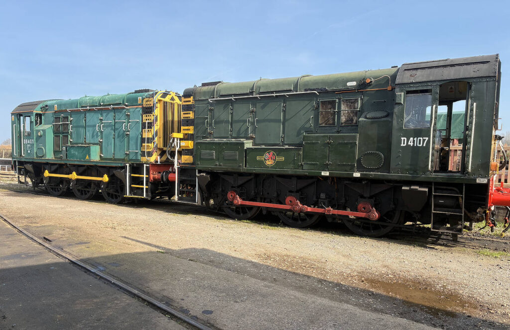 08401 (D3516) – this loco was busy shunting the yard at Williton on Saturday 21st March 2026 and was pictured when coupled to her Class 09 cousin D4107 (09019). Photo by Paul Fleet © CC BY-NC 4.0