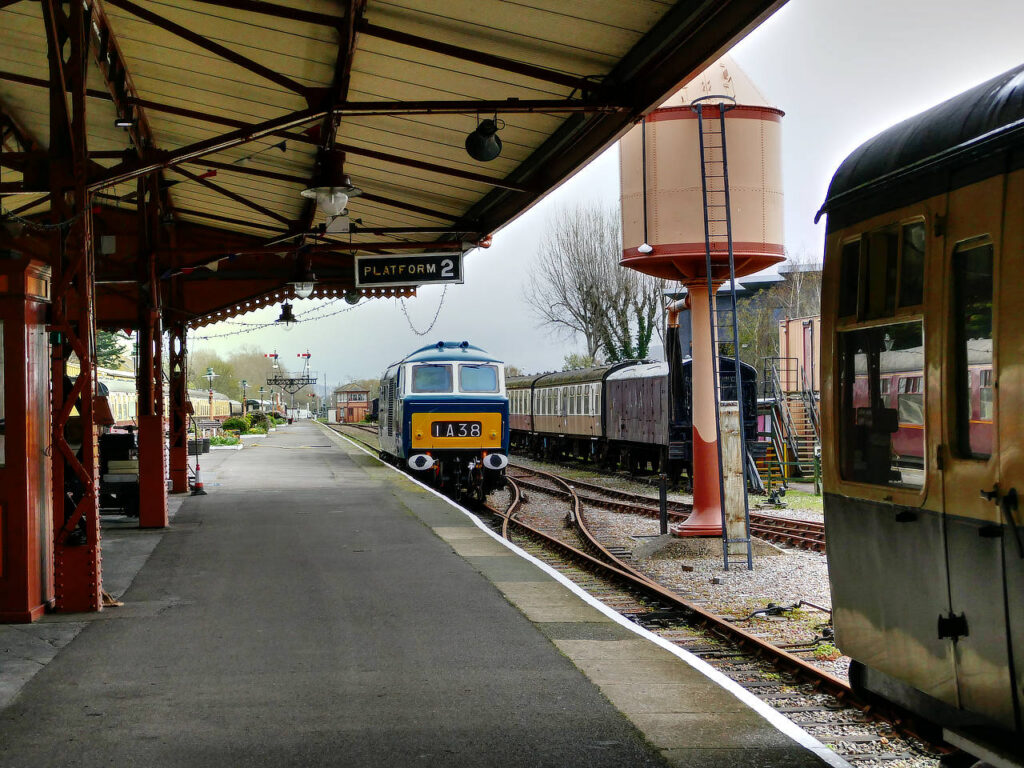 Class 35 ‘Hymek’ D7017 took up position in the bay platform at Minehead after a light engine movement from Williton on Friday 27th March 2026. Photo by Steve Edge © CC BY-NC 4.0